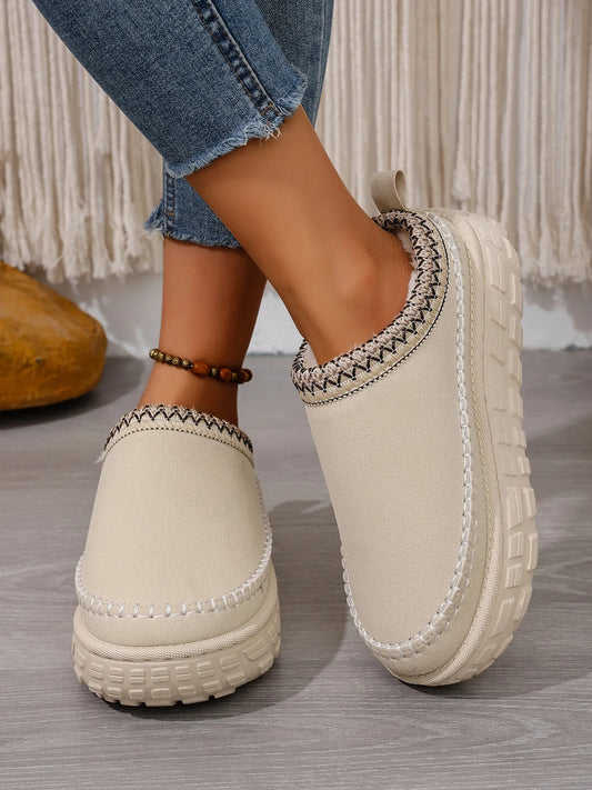 Embroidered Trim Round Toe Platform Boots